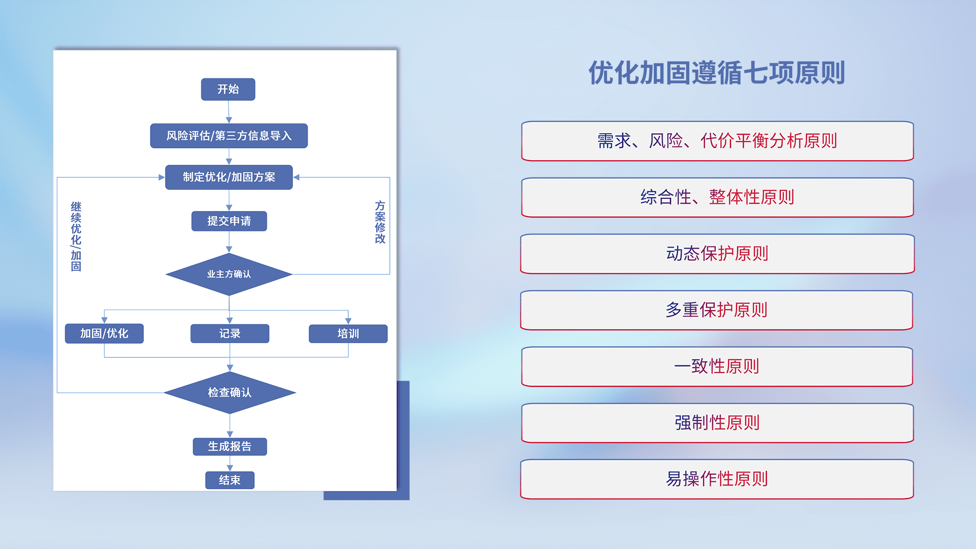 最大程度利用现有资产,,对评估发现的问题进行封堵与整改,,,防止漏洞被利用,,,提升整体网络安全性,,,,为客户带来高标准的优化加固服务。。