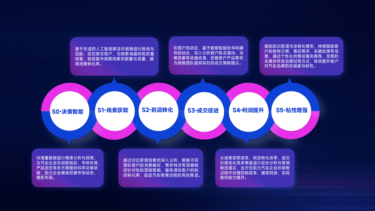 基于销售转化漏斗的薄弱环节,,,,为客户提供数据+模型+运营的智能应用,,实现销售业绩的提升;推动线索管理全链路的精细化管理和运营。。。